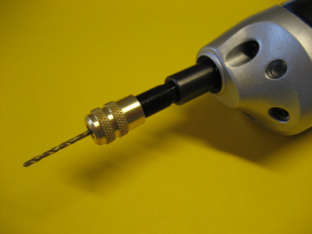 Kommen wir nun zur praktischen Anwendung. Die Löcher in den Schienen sollten mit einem 1,5 mm Bohrer von unten gebohrt werden.