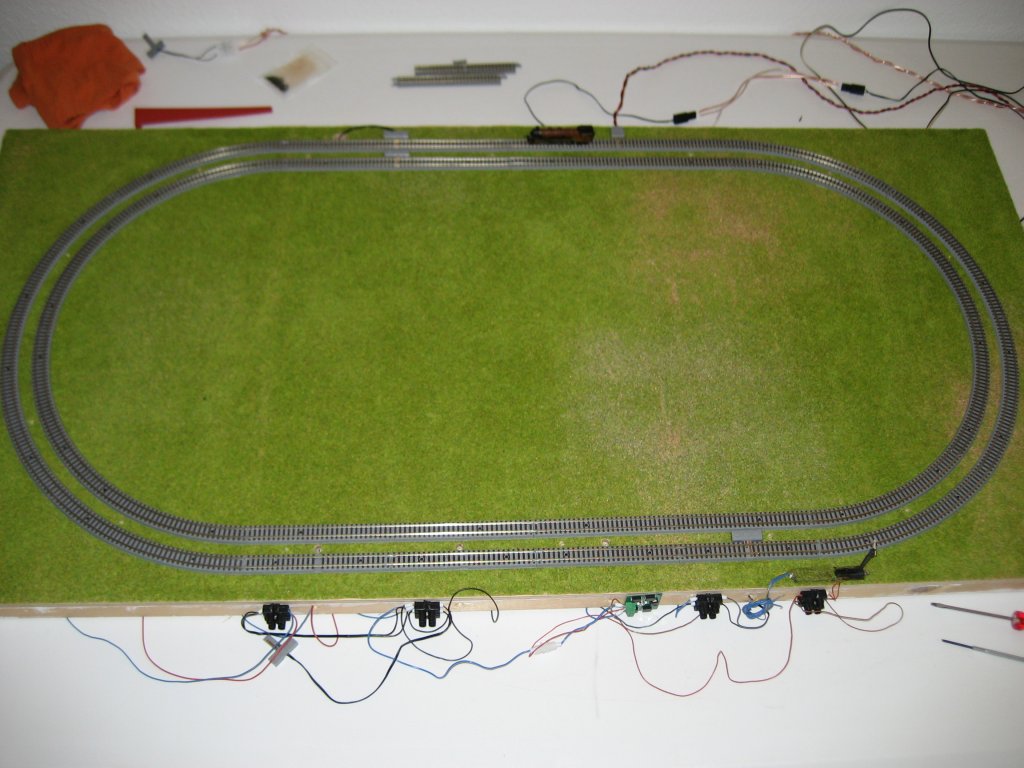 Nachdem nun die kompletten Gleise verschraubt sind, kommt es zu deutlich weniger Störungen im Fahrbetrieb. Somit werde ich diese Methode auch später auf der Anlage verwenden. Es müssen zwar ca. 600 Gleise verschraubt werden, was 1.200 Schrauben bedeutet, dafür ist das Ganze aber leicht zu demontieren und bietet dennoch die erforderliche Stabilität für einen reibungslosen Zugverkehr.